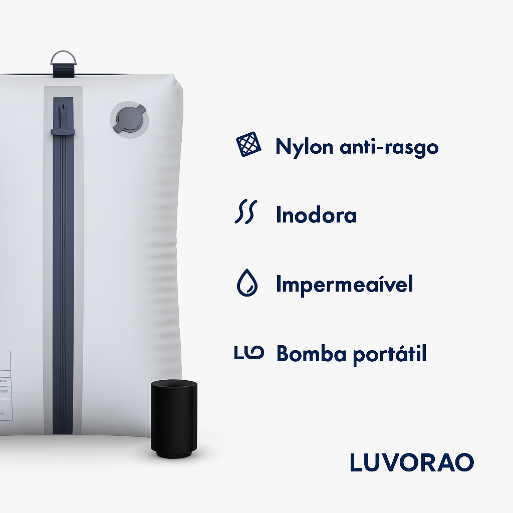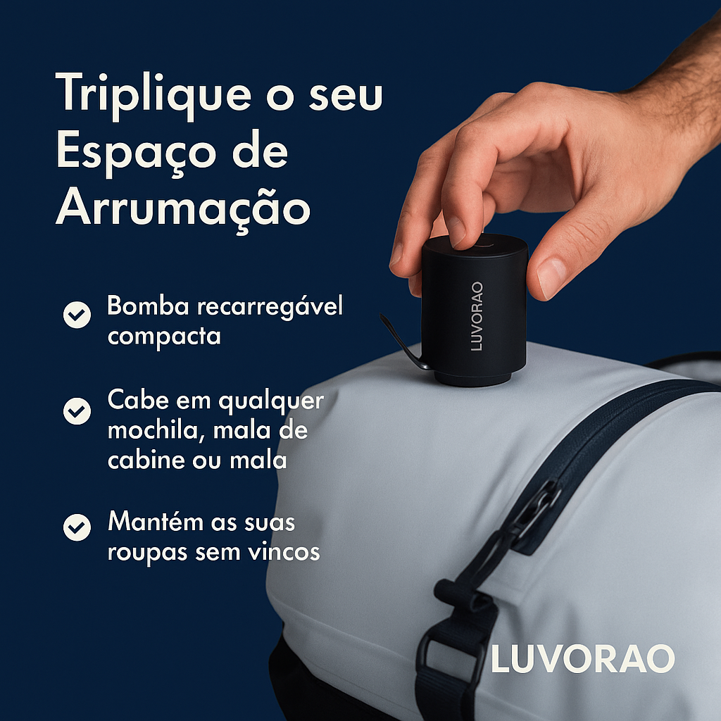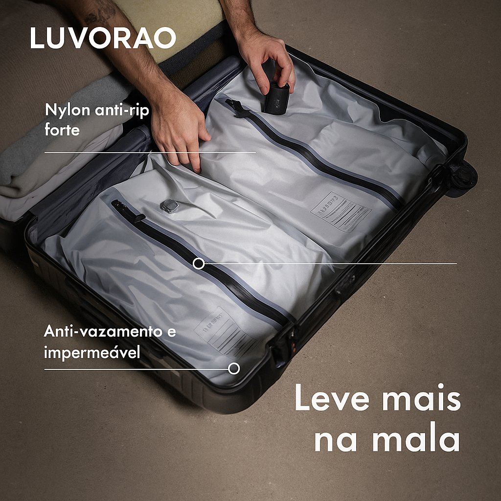 Tipp: Sie können die Kompression manuell vornehmen, indem Sie den Beutel aufrollen und zusammendrücken. Aber ein Tipp: Die tragbare Pumpe ist der beste Verbündete, um den Effekt zu maximieren und Zeit zu sparen.